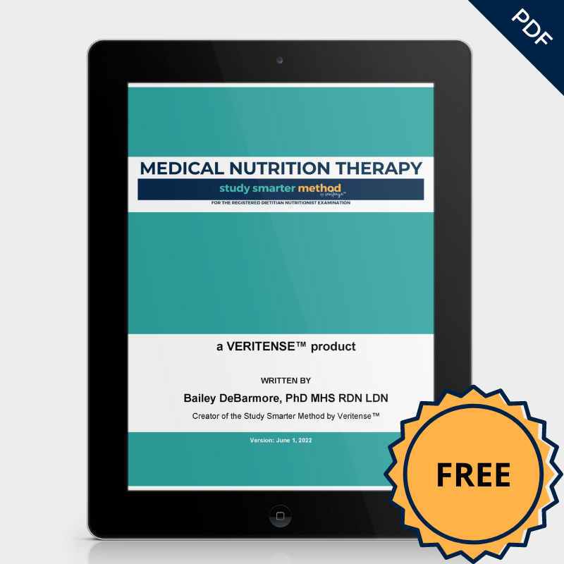 Covering all conditions tested on the RD exam, this study guide summarizes nutrition therapy and MNT goals with helpful tips on what specifically to focus on.