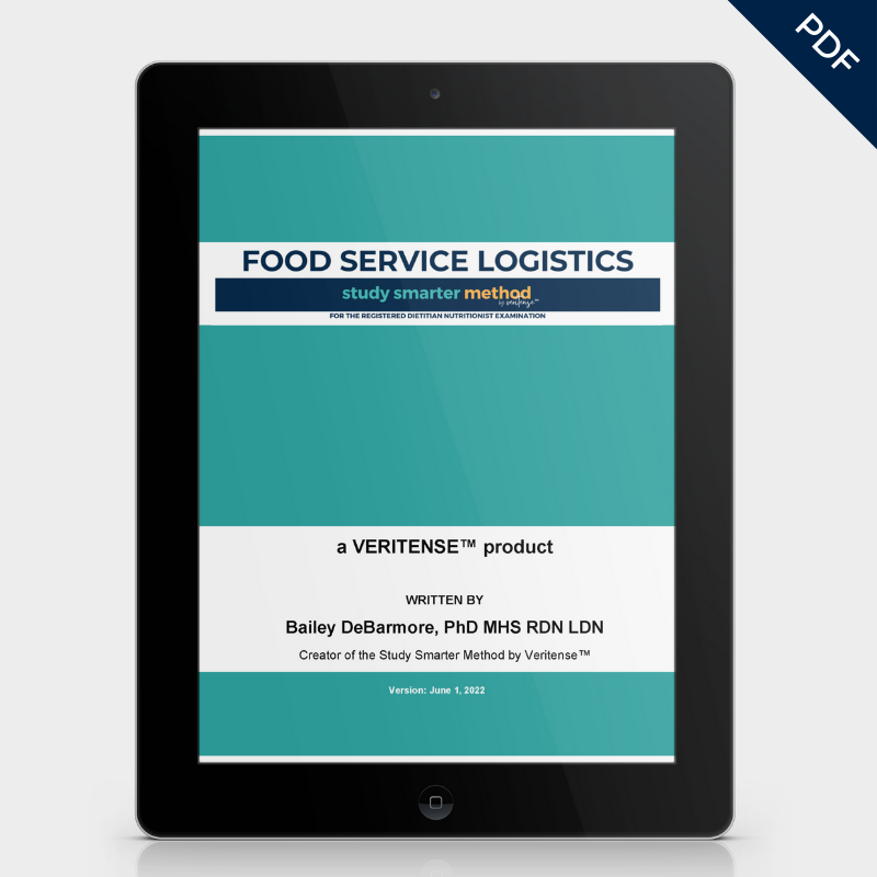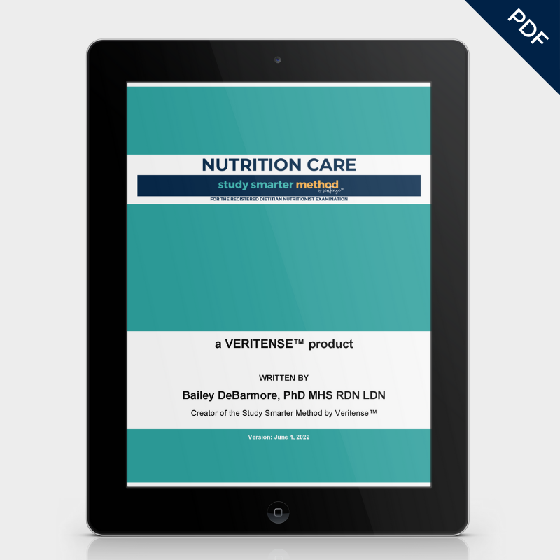 Purchase the Study Smarter Method E-Book for the RD exam with 205 practice questions, or supplement your learning with an in-depth study guide. If you're looking for an all-in-one approach to studying for the RD exam, you can buy the e-book, practice questions, and all 10 study guides together for a discounted price.